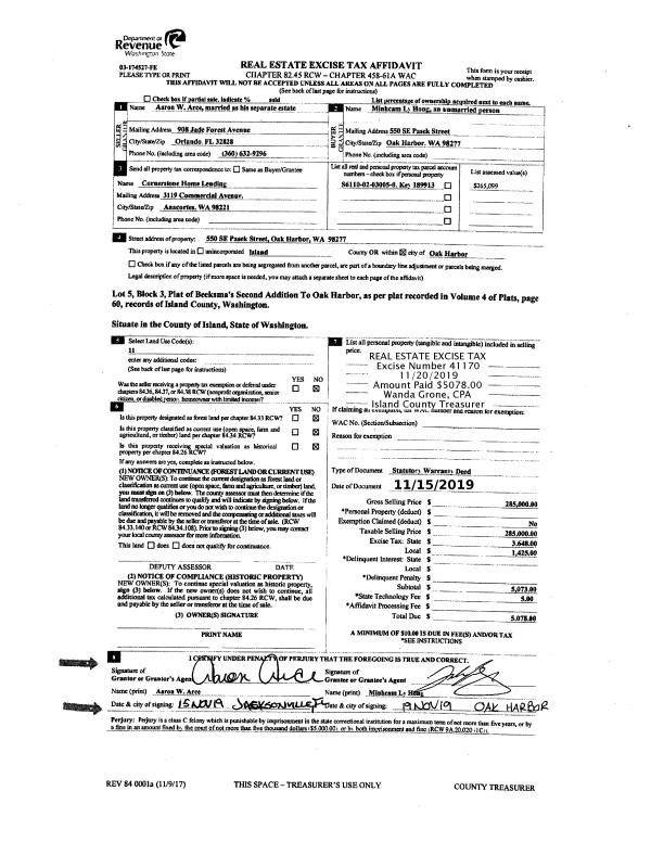 | Mailing Address: | 3675 WHIDBEY WOODS LN GREENBANK, WA 98253 | % Ownership: | 100.0000000000% |