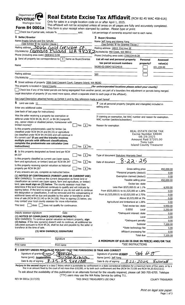 | Mailing Address: | 136 JACOBS RD COUPEVILLE, WA 98239 | % Ownership: | 100.0000000000% |