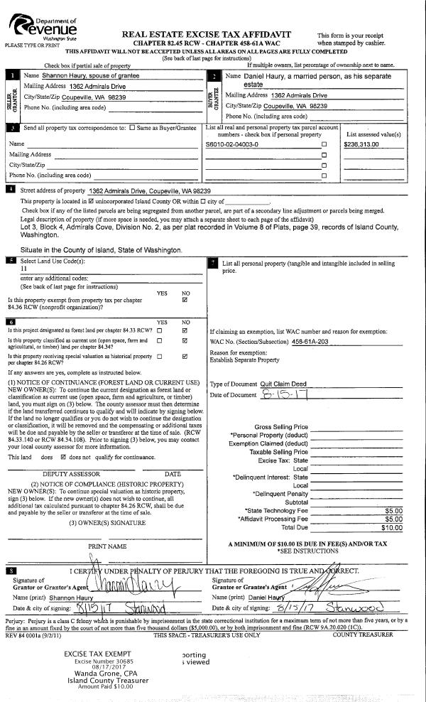 | 4 | 11/06/2008 | ESTSEPPROP | Establish Separate Property | HANCOCK, OLIVER D | HANCOCK, OLIVER D | | | $0.00 | 82893 | 4239570 |