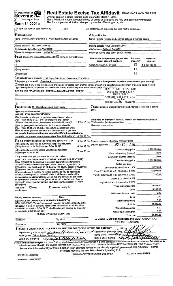 | Mailing Address: | KIMBERLEY JOHNSEN DURLAND 3008 SOUTHWEST FAIRWAY POINT DR OAK HARBOR, WA 98277 | % Ownership: | 100.0000000000% |