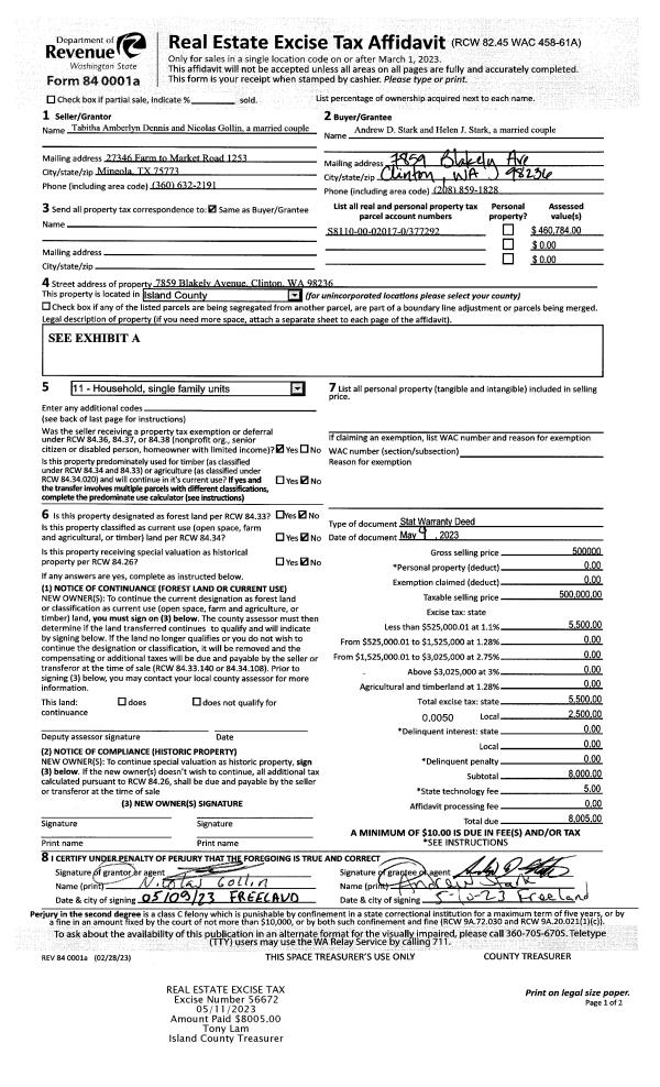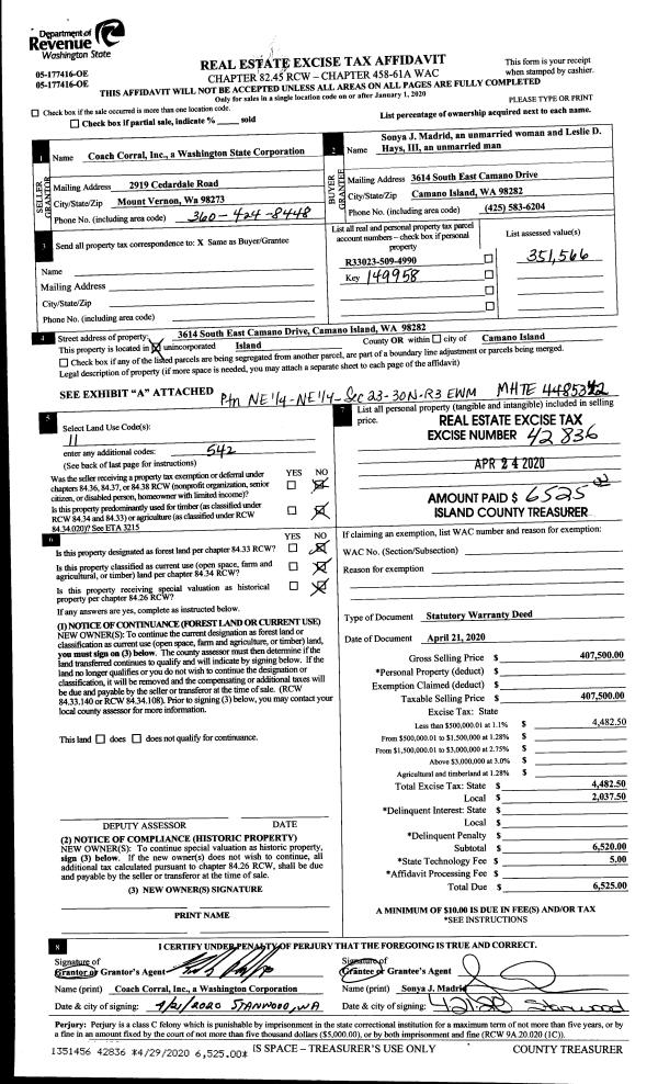 | 3 | 06/15/2021 | WD | Warranty Deed | VASIL, GEORGE | TILLICUM BEACH LLC | | | $1,000,000.00 | 48751 | 4522220 |