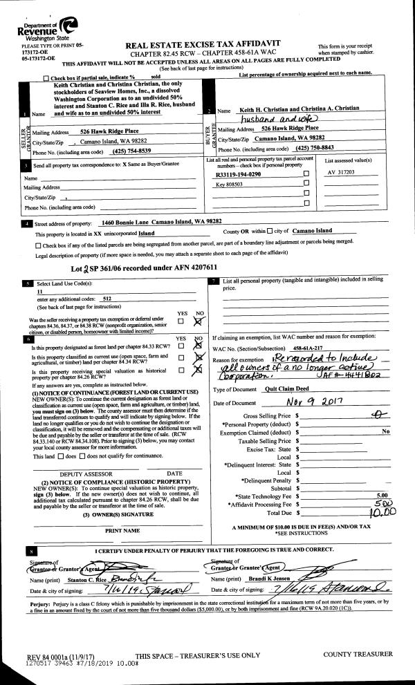 | Mailing Address: | 2890 N OAK HARBOR RD #416 OAK HARBOR, WA 98277 | % Ownership: | 100.0000000000% |