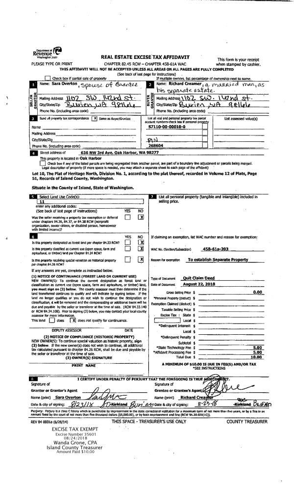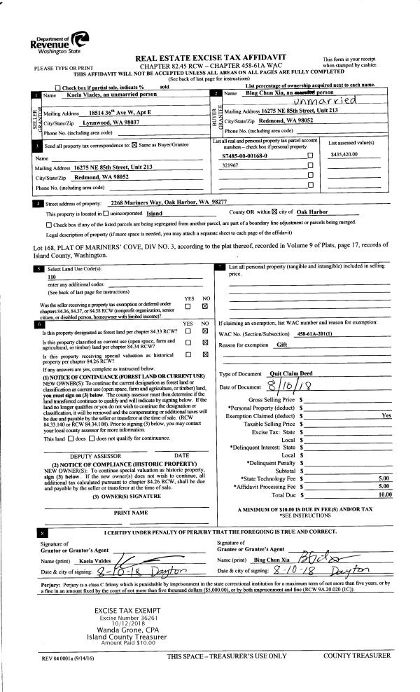 | Mailing Address: | MACKENZIE E NEAL 861 SE REGATTA DR UNIT 103 OAK HARBOR, WA 98277 | % Ownership: | 100.0000000000% |