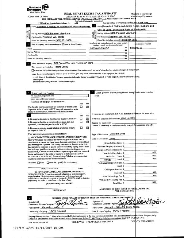 | Mailing Address: | 861 SE REGATTA DR, UNIT 203 OAK HARBOR, WA 98277 | % Ownership: | 100.0000000000% |