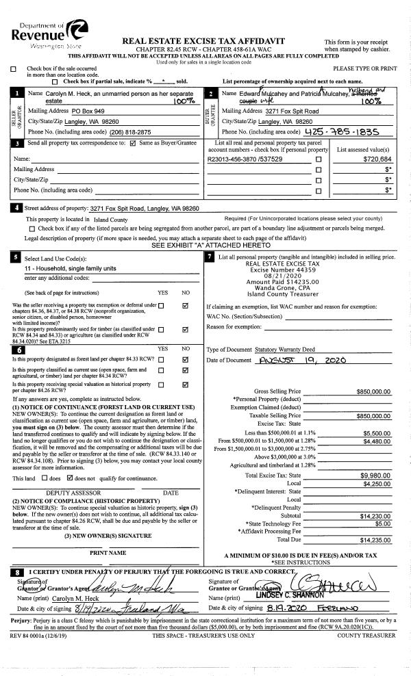| Tax Area: | 710 - APPRAISER-S Whid Schl Dist, outside Langley, improved & 1 acre or less | Land Use Code | 11 |