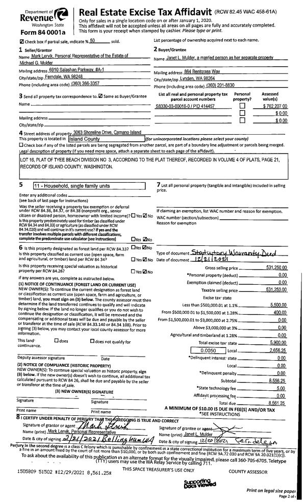 | Mailing Address: | 5969 MUTINY VIEW PL FREELAND, WA 98249 | % Ownership: | 100.0000000000% |