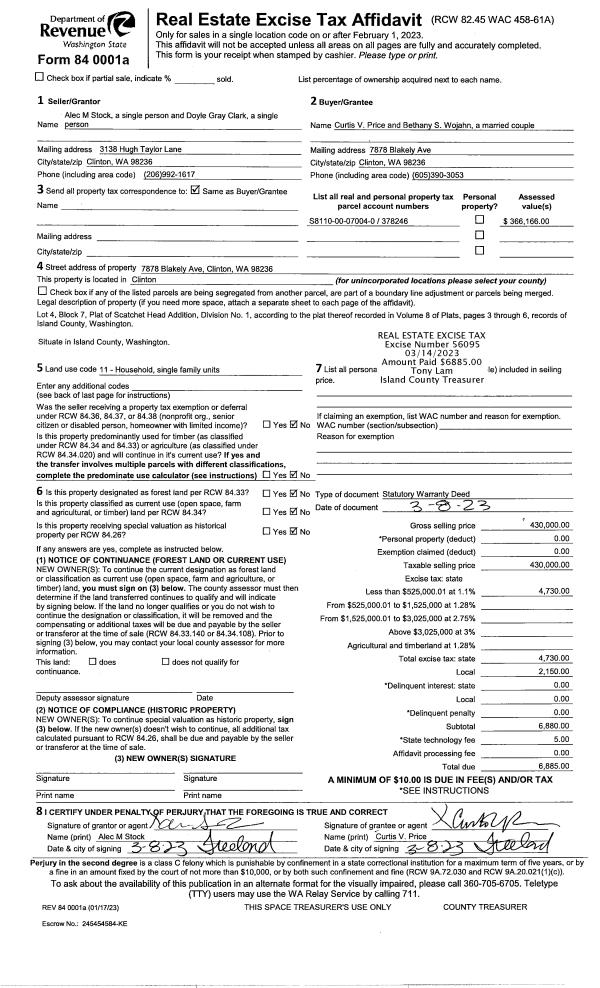 | Mailing Address: | PO BOX 73 CLINTON, WA 98236 | % Ownership: | 100.0000000000% |