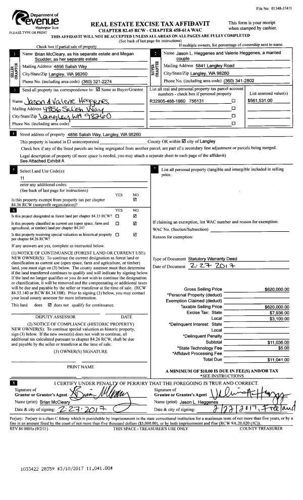 | Tax Area: | 712 - APPRAISER-S Whid Schl Dist, outside Langley, improved, greater than 1 acre | Land Use Code | 11 |