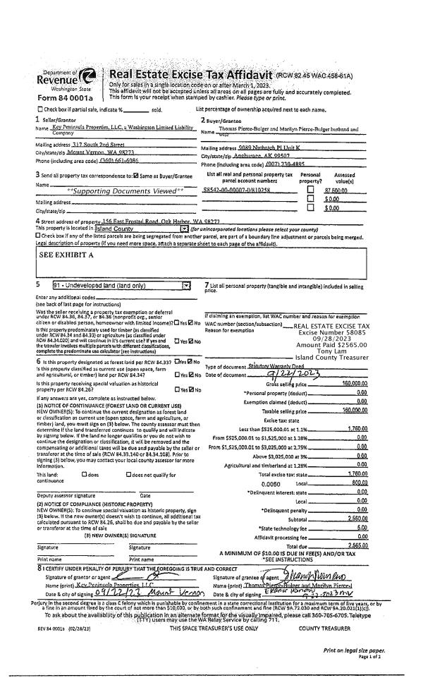 | Mailing Address: | CINDY LEE PETTEGREW 992 MARSHALL DR CAMANO ISLAND, WA 98282 | % Ownership: | 100.0000000000% |