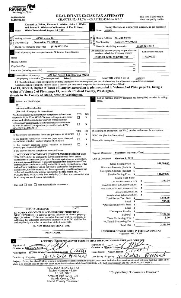 | 3 | 09/03/2021 | WD | Warranty Deed | JOHNSON, DENNIS L | SLUSHER, CHRISTINE | | | $600,000.00 | 49990 | 4528847 |