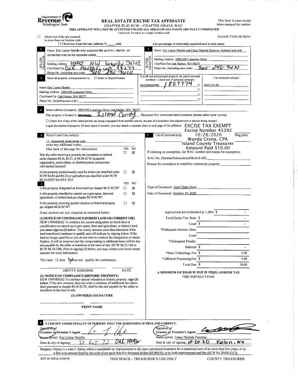 | Mailing Address: | RONDA J CLAWSON 20 CHATHAM PLACE CAMANO ISLAND, WA 98282 | % Ownership: | 100.0000000000% |