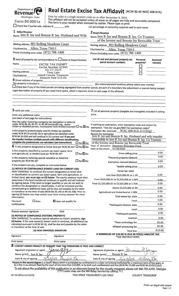 | Mailing Address: | MARTHA ACOSTA 204 SW TERRY RD TRLR 55 COUPEVILLE, WA 98239-3037 | % Ownership: | 100.0000000000% |