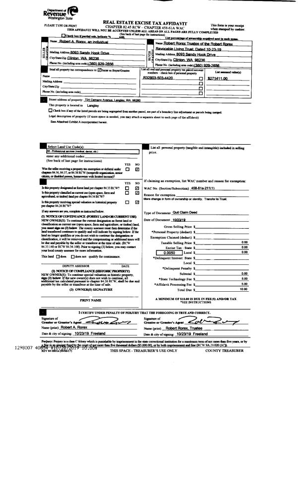 | Mailing Address: | 1141 HARBORTOP TERRACE GREENBANK, WA 98253 | % Ownership: | 100.0000000000% |