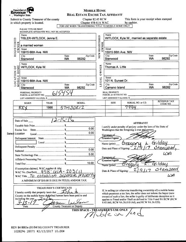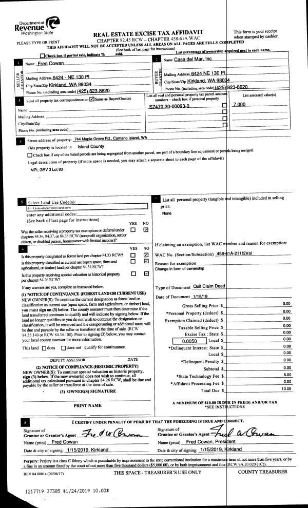 | Mailing Address: | 204 SW TERRY RD #54 COUPEVILLE, WA 98239 | % Ownership: | 100.0000000000% |