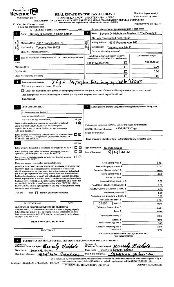 | Tax Area: | 712 - APPRAISER-S Whid Schl Dist, outside Langley, improved, greater than 1 acre | Land Use Code | 11 |
