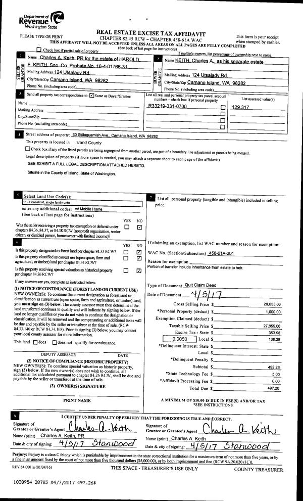 | 2 | 04/06/2017 | QCD | Quit Claim Deed | ENTER, BRUCE H | ENTER, BRUCE H | | | $0.00 | 28775 | 4420295 |