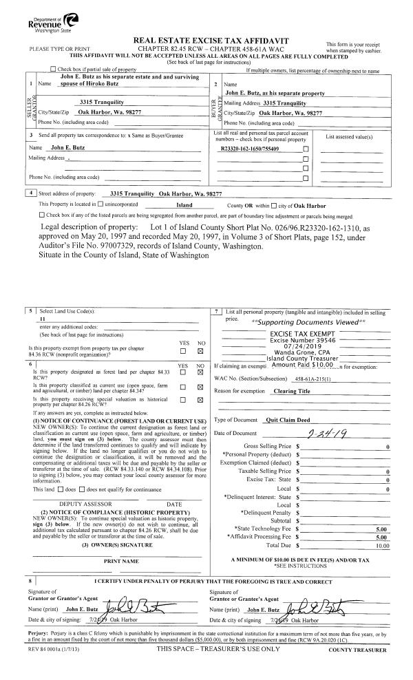 | Mailing Address: | REITA M SNOW 1538 WINTERCREEK LN CAMANO ISLAND, WA 98282 | % Ownership: | 100.0000000000% |