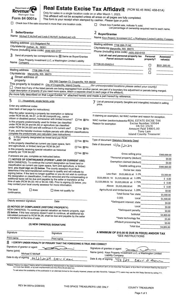 | Mailing Address: | JASMINE ELIZABETH BECERRA-RIVERA 730 SE 8TH AVE, H101 OAK HARBOR, WA 98277 | % Ownership: | 100.0000000000% |