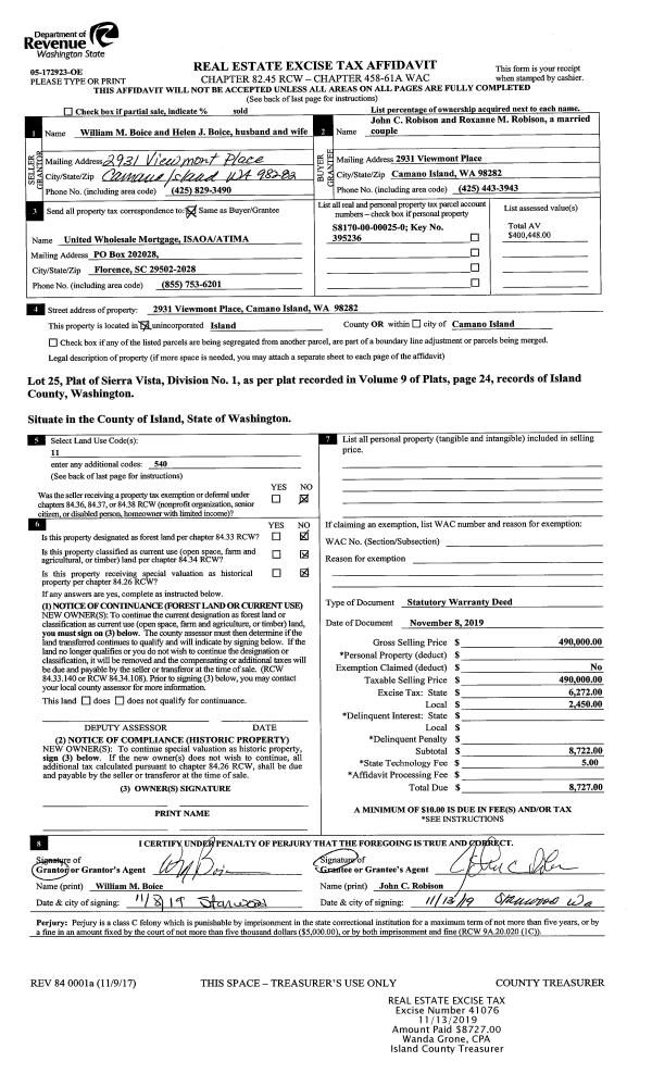 | Mailing Address: | 3721 QUAIL WALK LN GREENBANK, WA 98253 | % Ownership: | 100.0000000000% |