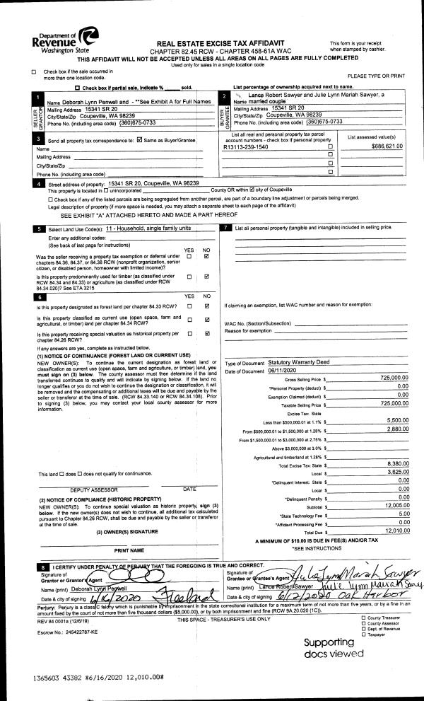 | Tax Area: | 719 - APPRAISER-S Whid Schl Dist, outside Langley, vacant & 50 acres or less | Land Use Code | 91 |