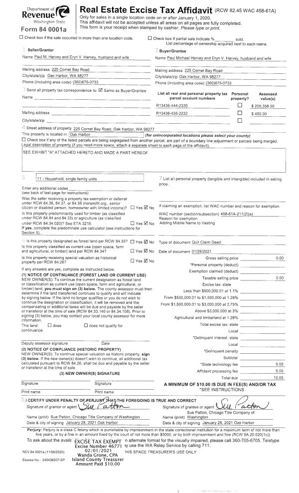 | Tax Area: | 719 - APPRAISER-S Whid Schl Dist, outside Langley, vacant & 50 acres or less | Land Use Code | 91 |