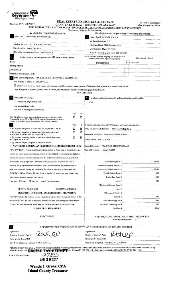 | Mailing Address: | PAULA J WEISS-HESSLER 2262 CRICKET LN FREELAND, WA 98249 | % Ownership: | 100.0000000000% |