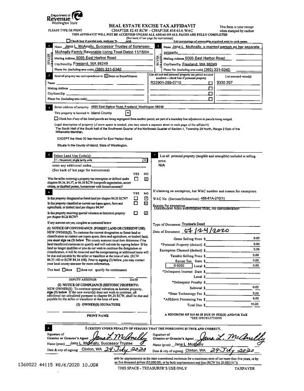| Tax Area: | 712 - APPRAISER-S Whid Schl Dist, outside Langley, improved, greater than 1 acre | Land Use Code | 11 |