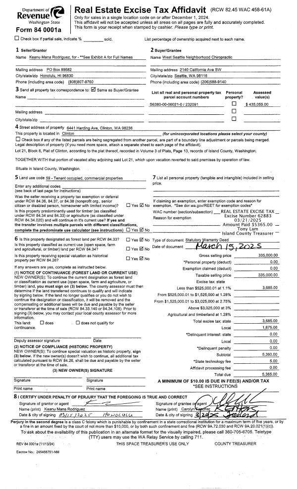 | 1 | 10/17/2024 | WD | Warranty Deed | WHIDBEY RE VENTURES LLC | ESPINOZA, EFRAIN P | | | $400,000.00 | 61594 | 4578333 |