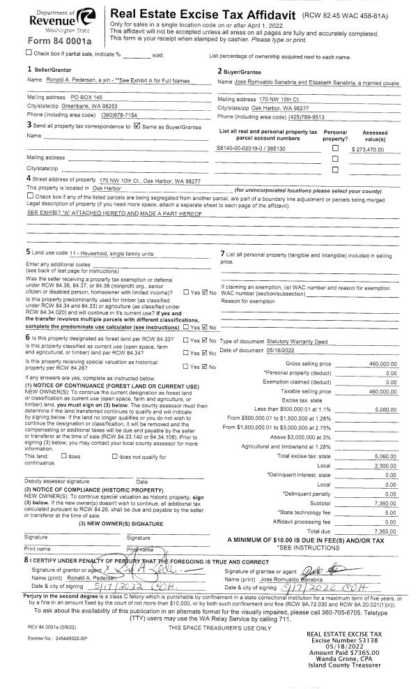 | Mailing Address: | 131 MYST PLACE CAMANO ISLAND, WA 98282-6350 | % Ownership: | 100.0000000000% |