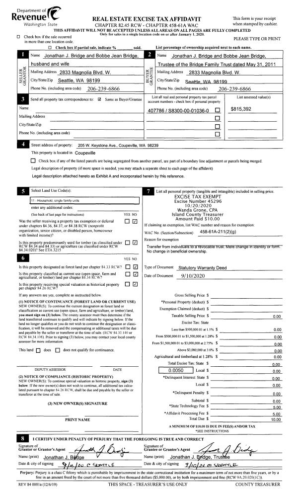 | Mailing Address: | JESSICA P MCCREADY 973 LAWSON RD CAMANO ISLAND, WA 98282 | % Ownership: | 100.0000000000% |