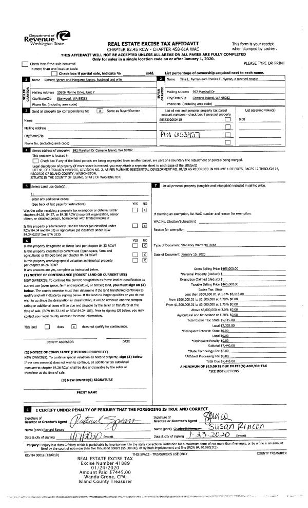| Mailing Address: | MARNI A ZIMMERMAN 3799 E HARBOR RD LANGLEY, WA 98260 | % Ownership: | 100.0000000000% |