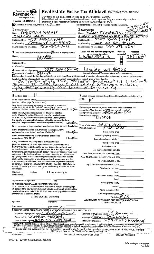 | Mailing Address: | TERESA K FYOCK 809 BERGWACHT PLACE COUPEVILLE, WA 98239 | % Ownership: | 100.0000000000% |