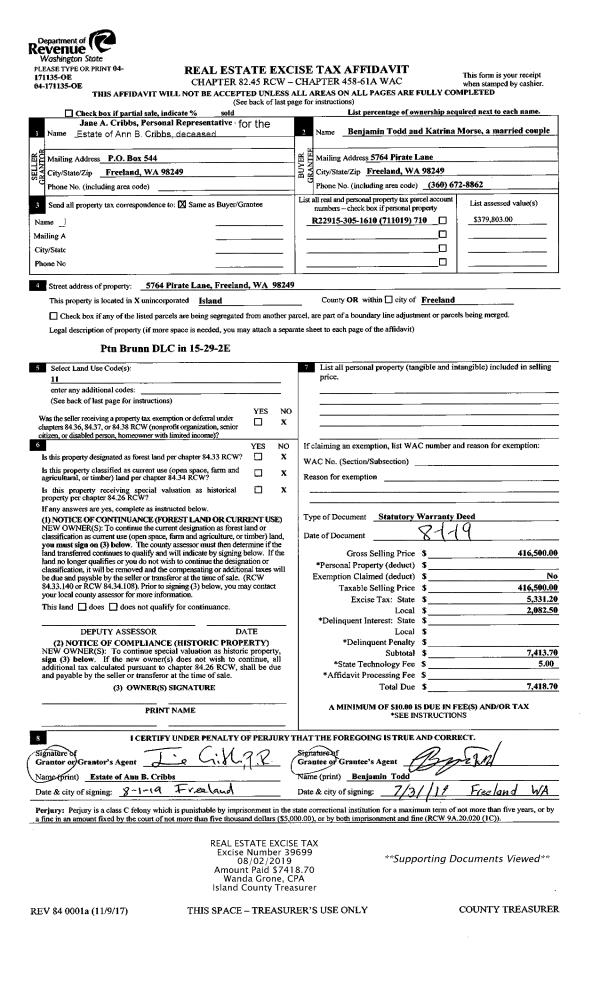 | 1 | 06/15/2022 | WD | Warranty Deed | MYERS TTEE, SUZANNE MEREDITH | COOKSEY, CRAIG I | | | $968,000.00 | 53639 | 4547372 |