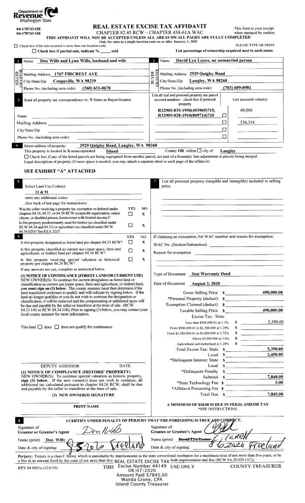 | Tax Area: | 712 - APPRAISER-S Whid Schl Dist, outside Langley, improved, greater than 1 acre | Land Use Code | 11 |