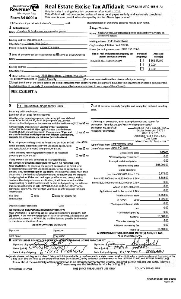 | Mailing Address: | 172 S EBEY RD COUPEVILLE, WA 98239-9748 | % Ownership: | 100.0000000000% |