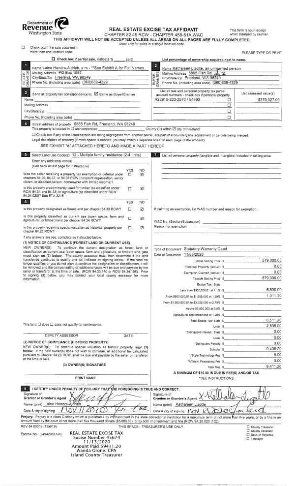 | Mailing Address: | ANNE S SAMENFINK 180 GLACIER PEAK DR CAMANO ISLAND, WA 98282 | % Ownership: | 100.0000000000% |