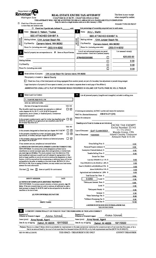 | 1 | 02/27/2025 | WD | Warranty Deed | ROBERTS, TERRENCE W | CUCHNA, TIMOTHY D | | | $1,415,000.00 | 62716 | 4582856 |