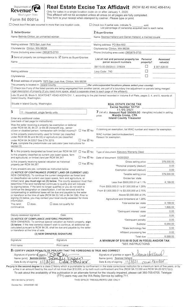 | Tax Area: | 712 - APPRAISER-S Whid Schl Dist, outside Langley, improved, greater than 1 acre | Land Use Code | 11 |