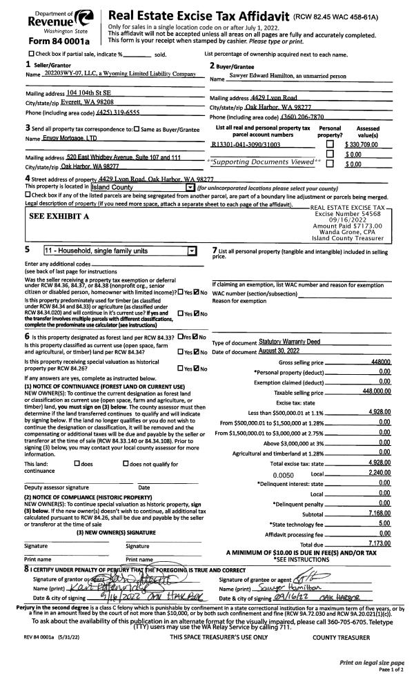 | Mailing Address: | KATHLEEN M GEDEON 971 ROCKAWAY LN CAMANO ISLAND, WA 98282 | % Ownership: | 100.0000000000% |