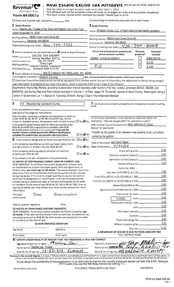 | Mailing Address: | 747 NW 1ST AVE OAK HARBOR, WA 98277 | % Ownership: | 100.0000000000% |