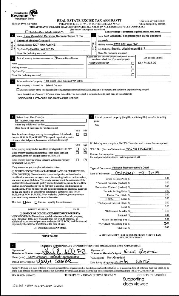 | Mailing Address: | 4319 HONEYMOON BAY RD GREENBANK, WA 98253 | % Ownership: | 100.0000000000% |
