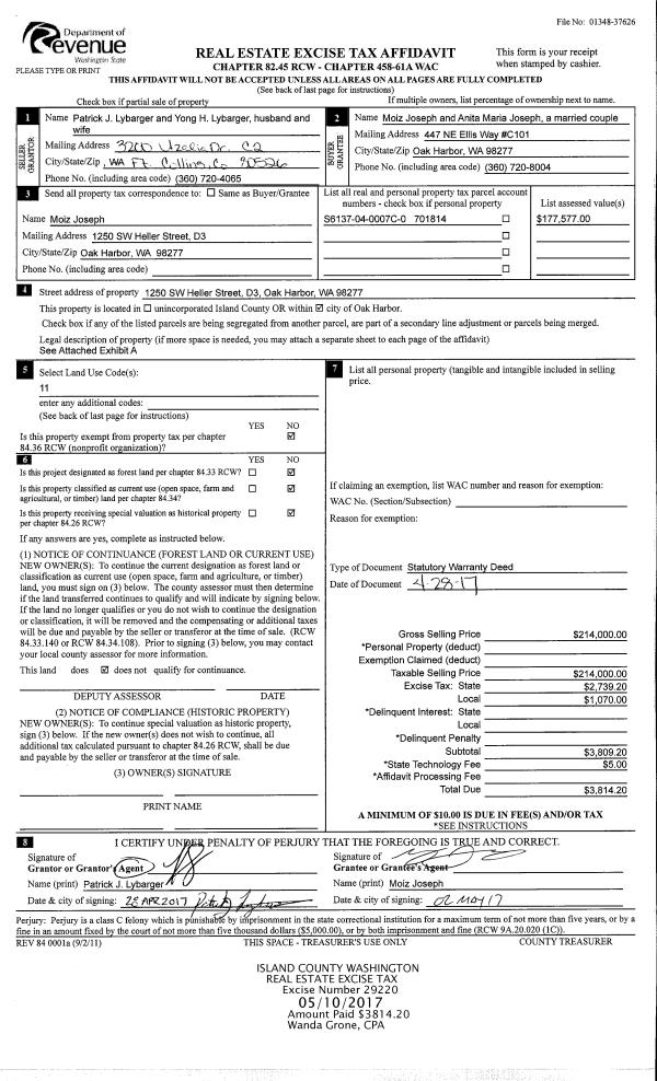 | 3 | 05/01/1994 | WD | Warranty Deed | B, L F | OBLAS, VICTOR & | | | $60,000.00 | 42325 | 94013196 |