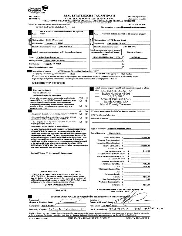 | 4 | 10/01/1994 | WD | Warranty Deed | BAKER, NORMAN E | SLOAN, DAVID F | | | $55,000.00 | 44452 | 94022873 |