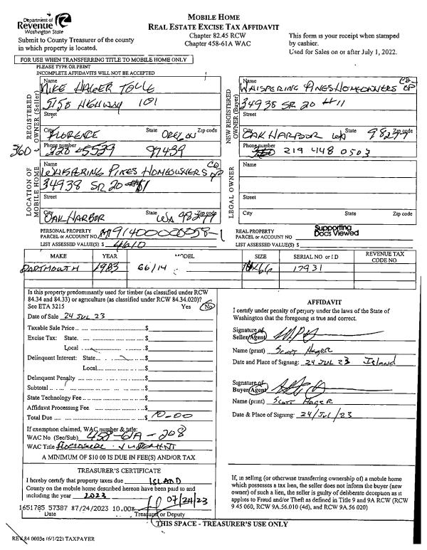 | Mailing Address: | 770 NE MIDWAY BLVD #201 OAK HARBOR, WA 98277-9215 | % Ownership: | 100.0000000000% |