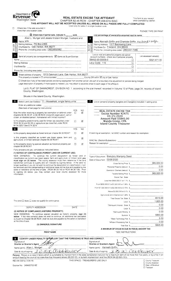 | 3 | 04/07/2005 | WD | Warranty Deed | SEAFIRST BANK, REIS TRUSTEE | EVERGREEN FARMS GROUP INC, | | | $84,000.00 | 51460 | 4130615 |