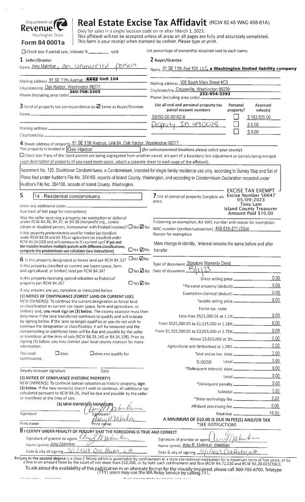 | Mailing Address: | PO BOX 612 STANWOOD, WA 98292-0612 | % Ownership: | 100.0000000000% |