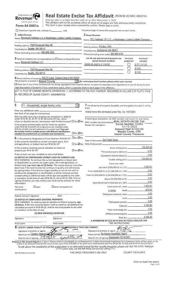| Mailing Address: | 2920 HELLER RD #18 OAK HARBOR, WA 98277 | % Ownership: | 100.0000000000% |