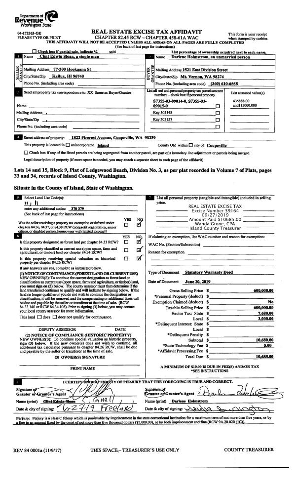 | 1 | 05/11/2019 | WD | Warranty Deed | MARSTON, MARSHALL | FORSBERG, JON | | | $545,000.00 | 38666 | 4464028 |
