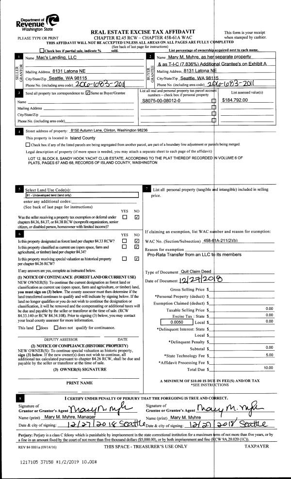 | Mailing Address: | CAROL LEE BECHARD, TTEE 1038 JOANNA LN CAMANO ISLAND, WA 98282 | % Ownership: | 100.0000000000% |