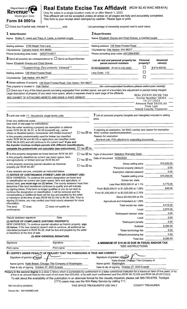 | Mailing Address: | 324 ALTA VIA DR CAMANO ISLAND, WA 98282 | % Ownership: | 100.0000000000% |